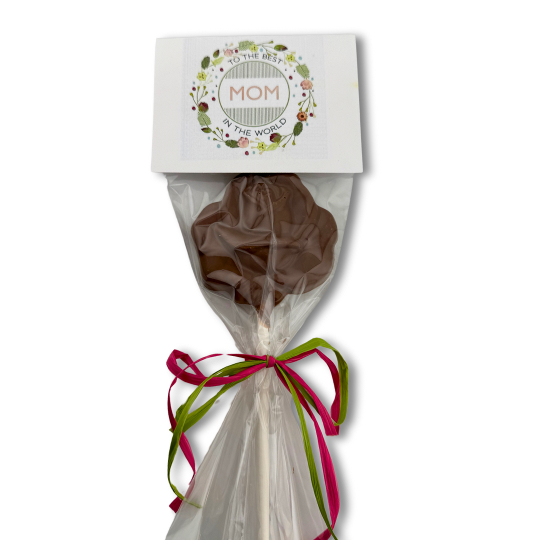 Make Mom smile with our Best Mom in the World Chocolate Lollipop, a sweet token of love shaped like a blooming rose and crafted from smooth, creamy milk chocolate. Finished with a charming gift tag that reads “Best Mom in the World,” this beautifully wrapped lollipop is a simple yet heartfelt way to show your appreciation.