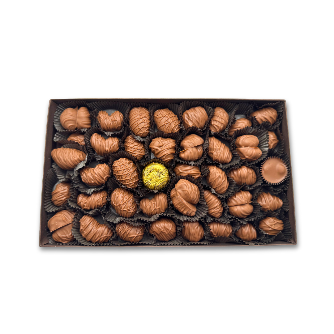 Indulge in the rich, nutty flavors of our Create-Your-Own Nut Assortment. This boxed collection features your favorite gourmet nuts coated in either creamy milk chocolate. Perfectly balanced and irresistibly delicious, this assortment is ideal for gifting or enjoying as a luxurious snack.